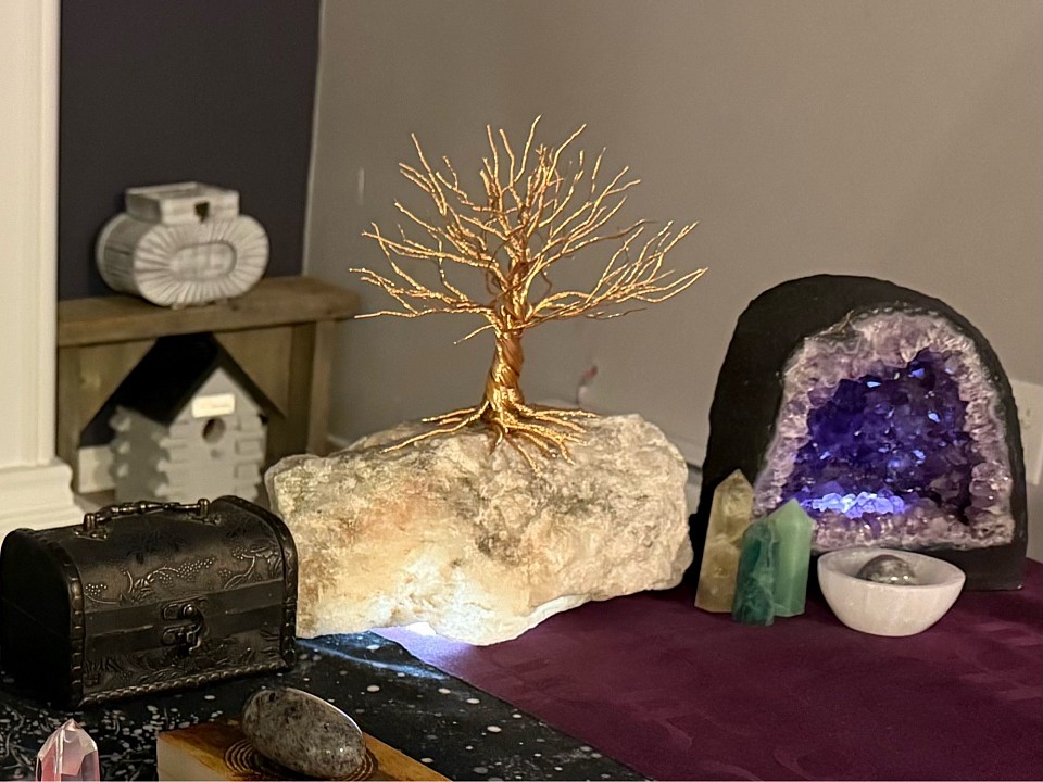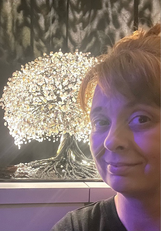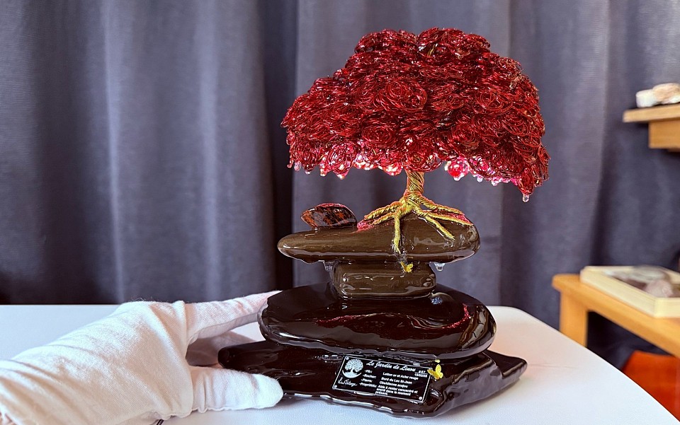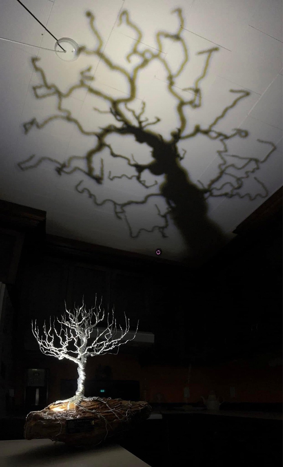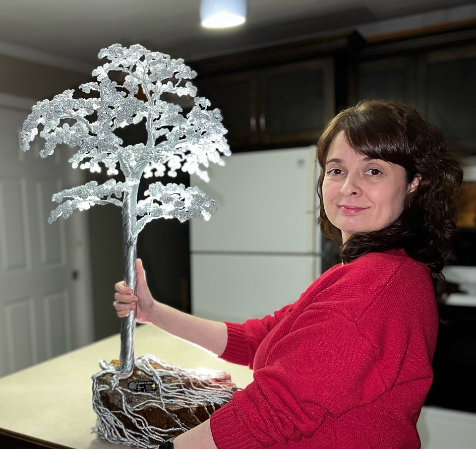 Artiste sculptrice d'arbres en fil métallique, créatrice de lampes d'ambiance.