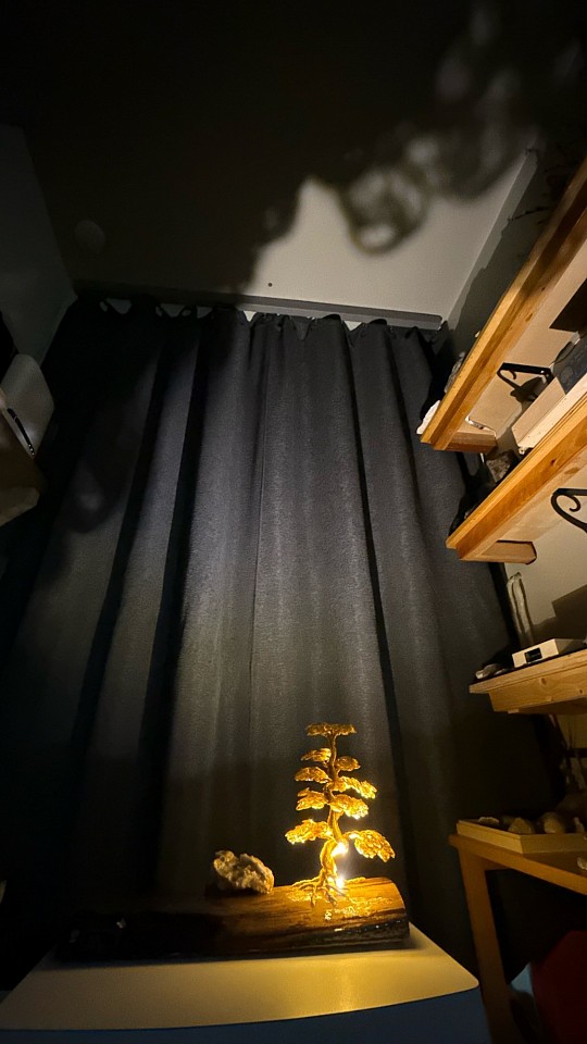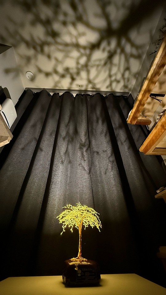 Arbre en fil de Cuivre teinté brun, sur Pin.
