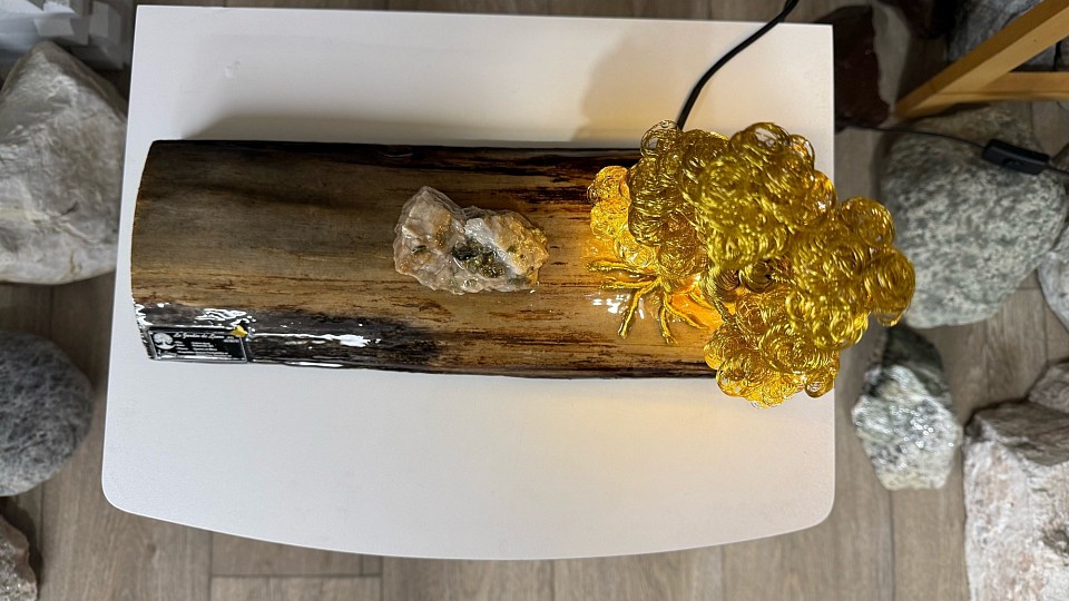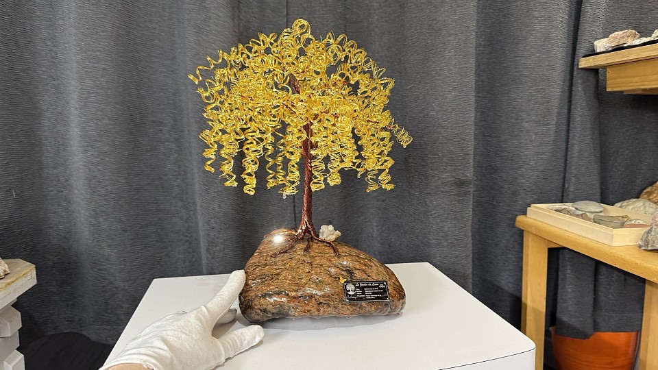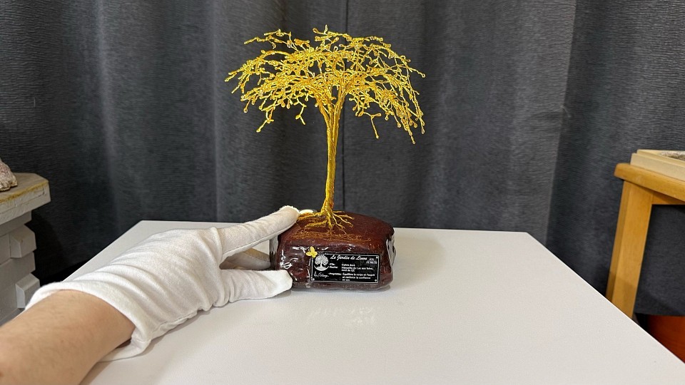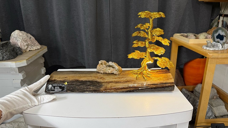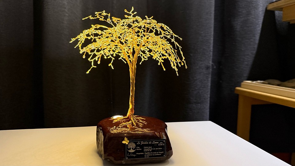 Arbre en fil de Cuivre teinté doré, sur une roche d'Hématite.