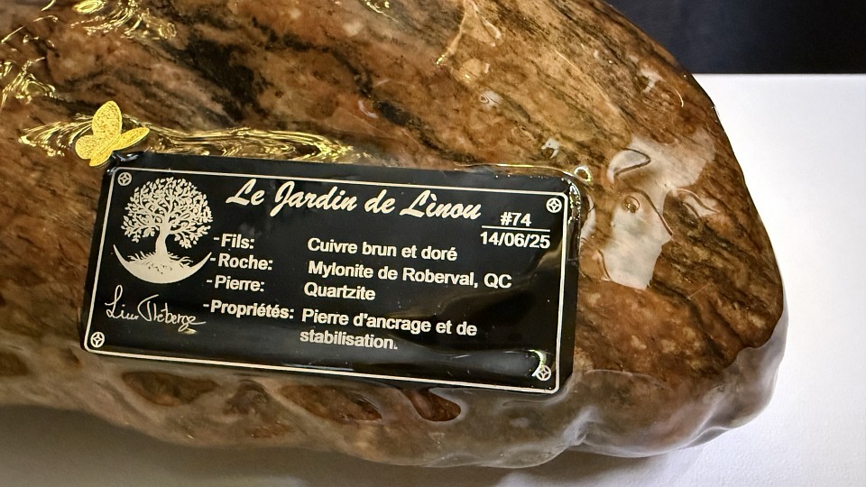 Arbre en fil de Cuivre teinté brun et doré, sur une roche de Mylonite.
